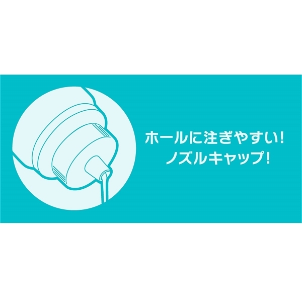 狭い穴のホールにも注ぎやすいノズルキャップ仕様。
