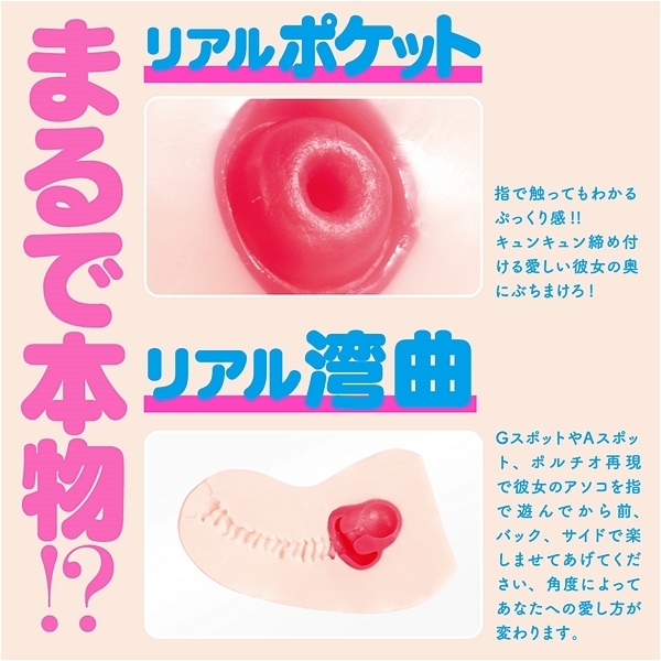 本物に近づけた平均サイズ、GスポットとAスポット、リアルに当たるポルチオ角度、波打つ肉壁、素材もこだわった「ふんわり柔肌とろける生感触」。