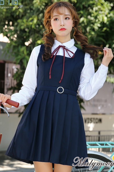 トップページ > 衣装・コスチューム > セーラー服・ブレザー制服 > <malymoon>ネイビーカラーのジャンパースカート制服(長袖)