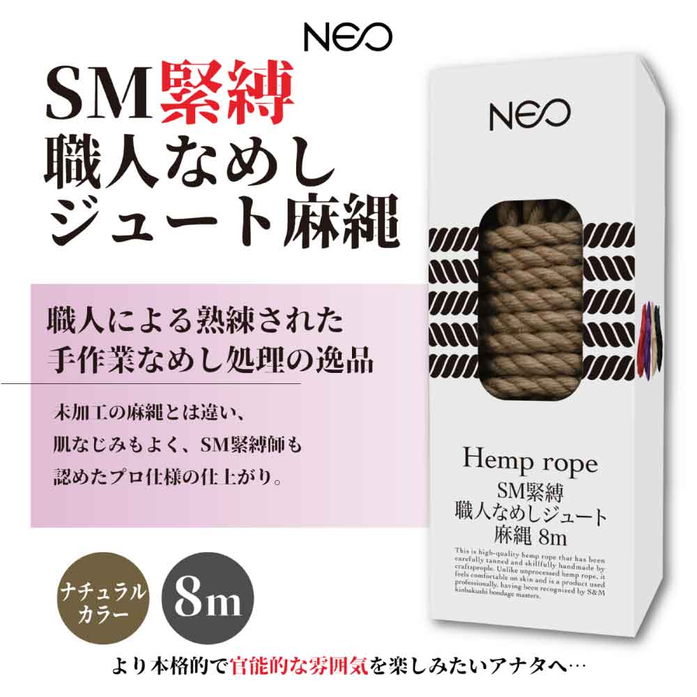 職人による熟練された手作業により処理された高級ジュート麻縄です。 SM向けに選ばれた麻縄で雰囲気を盛り上げます。 肌なじみもよくSM緊縛師も認めたプロ仕様の商品となっています。 ●カラー:ナチュラル